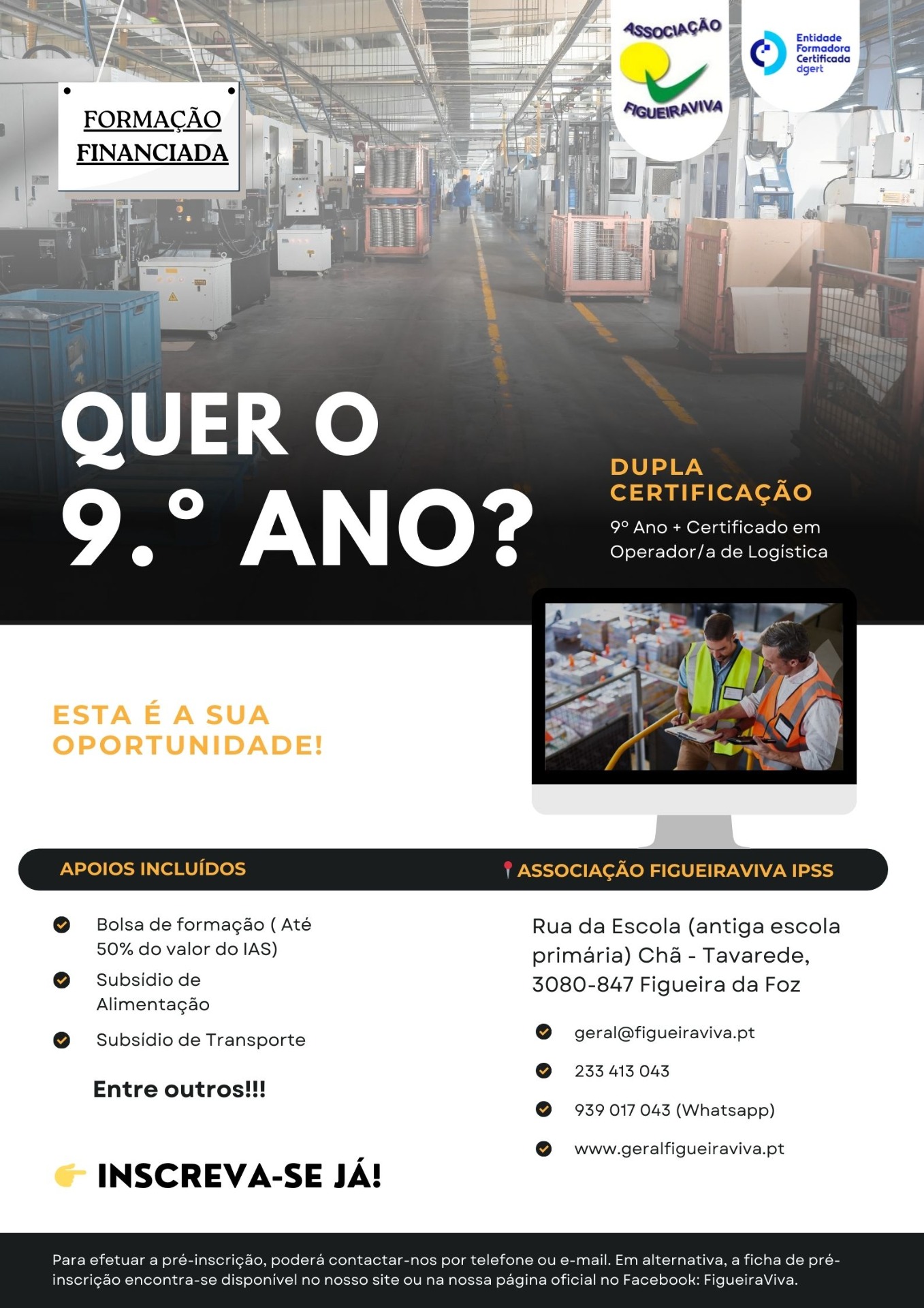 Concluir o 9.º ano pode ser o passo que falta para abrir novas oportunidades na sua vida pessoal e profissional. A FigueiraViva vai iniciar uma formação financiada que permite a conclusão do 9.º ano com dupla certificação, oferecendo não só uma qualificação escolar, mas também um reforço real das suas competências. Esta formação inclui vários...